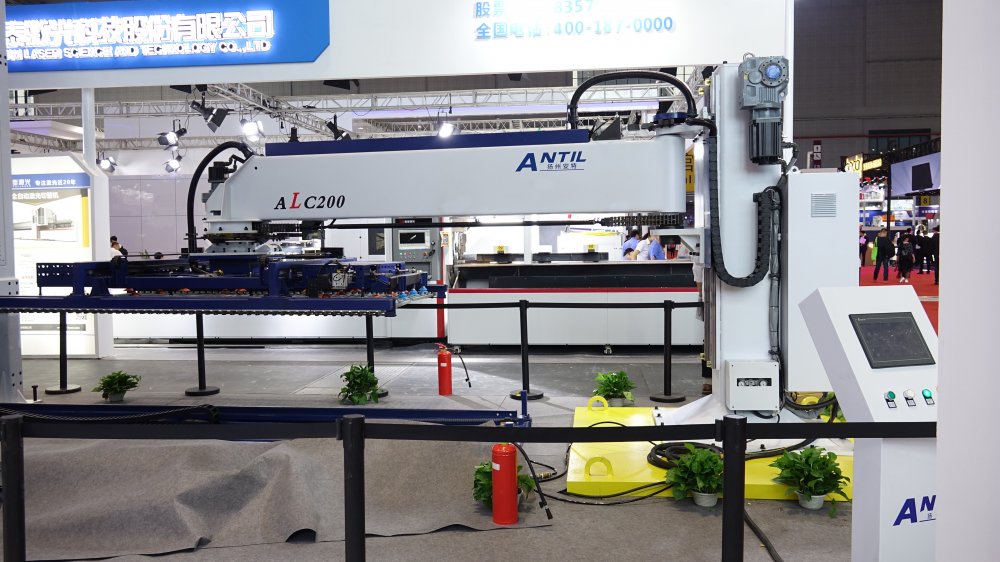 揚(yáng)州安特作為參展商之一,歷經(jīng)四個(gè)月的籌備,耗資數(shù)百萬,共展覽了三臺(tái)設(shè)備,分別是ALC200(圖一),關(guān)節(jié)折彎機(jī)器人(圖二)和立體料庫ARW3015-16(圖三)