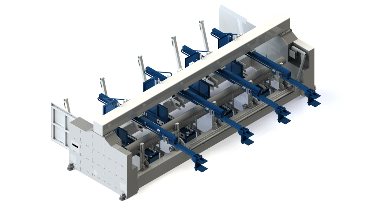 本系統(tǒng)由一臺(tái)ATC系列激光切管機(jī)自動(dòng)上料,激光切割切管機(jī)以及安全防護(hù)設(shè)施(選配)等組成,其總裝的三維如圖
